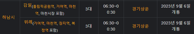 경기도 하남 똑버스 운행 현황