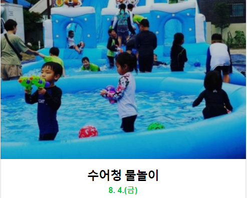 6. 물총훈련소. 워터터널. 대형 빙수 만들기 남한산성을 방문하는 참가자들에게 한여름 무더위를 식혀주는 프로그램과 물풍선으로 준비된 과녁을 맞히는 행사 행사장 입구에 시원한 물이 분사되는 텐트통과하는 행사와 참가자 모두가 만들어서 먹는 빙수 만들기 체험등 다양한 행사가 준비된다
