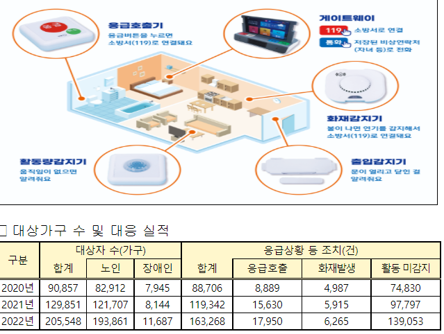 본문댁내 설치된 장비는 감지한 응급상황 119및 응급관리요원에 자동으로 알려 신속한 구급. 구조를 지원