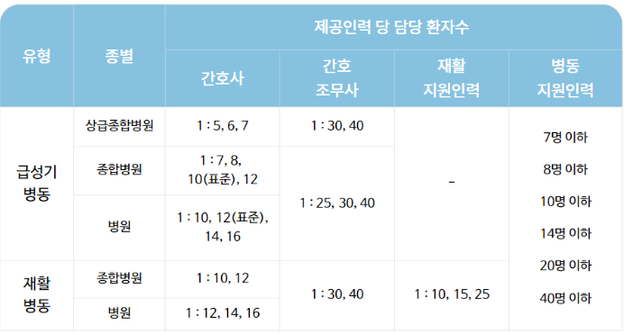 간호 조무 조무사를 최대 3.3배로 늘려 배치할 예정이며 1인당 해야 하는 환자 수를 30~40명에서 12~20명 기준으로 국민이 받는 서비스의 질을 높이기 위해서라고 할 수 있겠습니다.