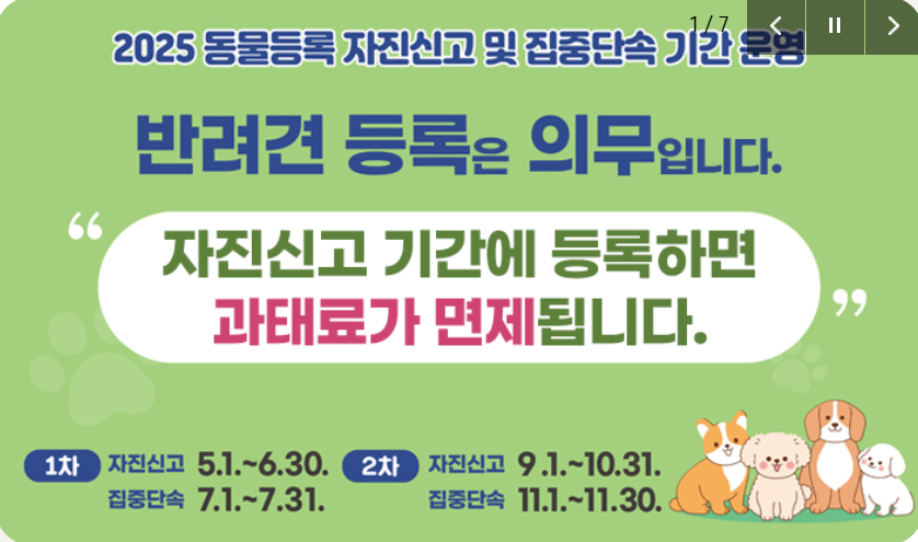 2025 반려견 등록 자진신고, 지금이 기회입니다! 과태료 없이 등록하세요